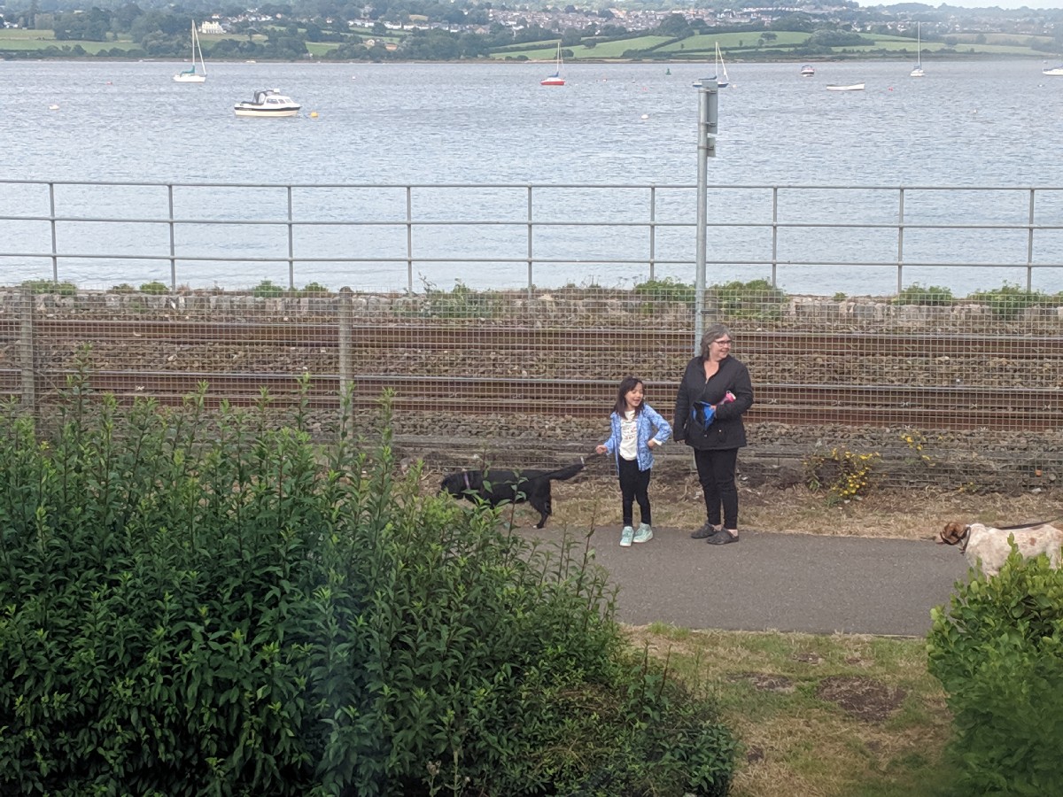 15:28:35 Saw this poster in Totness station, thought it might come in handy for a future trip to Devon. | 17:30:02 Back in Starcross, Erika taking Jess for a walk. | 17:30:13 | 17:30:15 |
