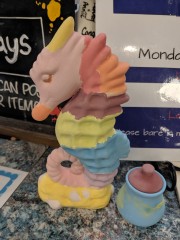 11:19:24 Sadly back on the mainland now! Waiting for a taxi. | 13:00:53 The taxi took us to Totnes, and the lady who was driving suggested Blue China - a place where kids can paint pottery. So that is what we did! | 13:36:54 | 14:17:25 Our painted products, ready to be fired. |