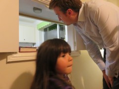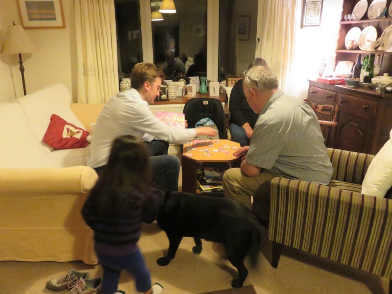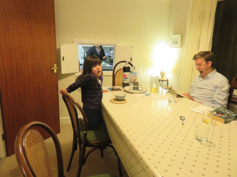 16:32:40 On arrival at Dad's house, Erika dozing in her car seat next to Chie and Vera on the sofa. | 20:41:24 Me and Erika yawning after dinner. | 20:42:07 Looking through the hatch. | 20:42:57 Grandad's ice cream. |