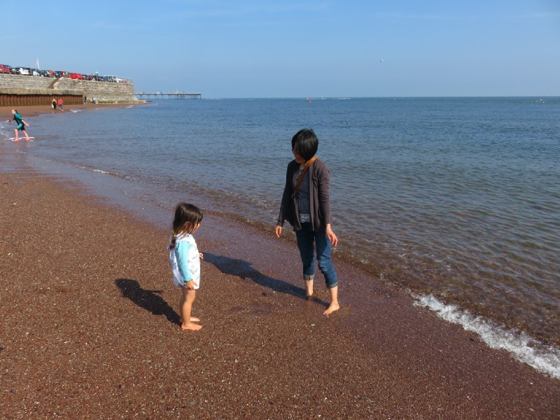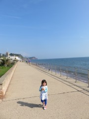 11:54:00 Erika on the seafront. | 12:08:31 Erika on the beach at Teignmouth. | 12:08:42 | 13:01:58 Lunch on a bench overlooking all the little boats. |