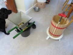 08:33:09 Dad's cider making equipment - the scratter on the left and the press on the right. | 08:34:19 Close up on some scratting taking place. | 09:08:07 Erika on the rocking horse. | 11:48:23 Erika having some ice cream in teignmouth. |