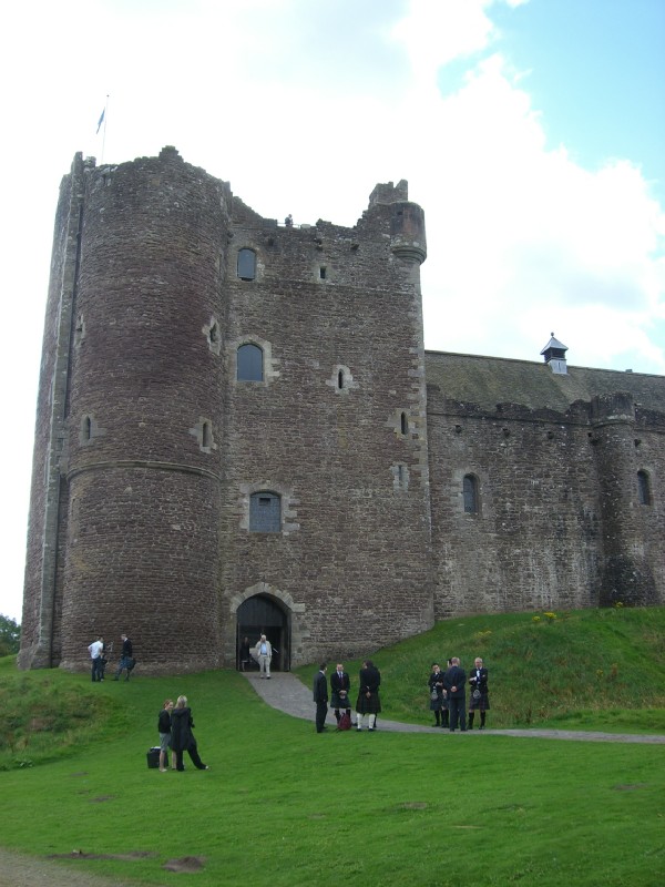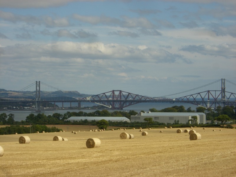 | 12:36:10 A couple of last shots of the castle... | 12:36:15 ...with the wedding guests assembling, but no sign of Lancelot rushing in to sluaghter them all indiscriminately. | 13:18:55 Chie had wanted to see the Forth bridge, and so we found this nice little point to stop off on the way back to Edinburgh. |