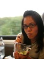 | 13:19:03 There's a close-up. | 13:19:57 ...and one more shot before heading on to Edinburgh. | 18:37:39 On the train from Edinburgh back to London, Chie enjoying an M&S salad. |