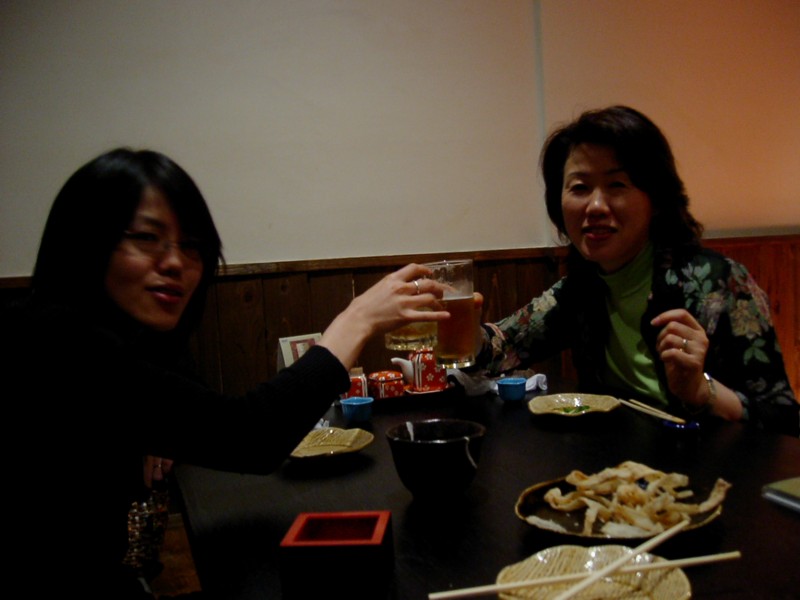 We'd spent most of the day indoors, and so around 5 or 6 Chie and I decided we really ought to head out... We didn't really have anything planned, but pleasingly met up with Chie's mum on her way home from work, and spontaenously decided to go into this little izakaya near where Chie's family live...