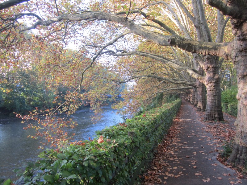09:11:02 The first secton of my walk to the office in the morning in Zurich from my hotel, along the Sihl canal. | 09:11:16 One of the columns adorning one of the bridges I pass along the way. | 09:11:24 Can still see the moon. | 09:17:31 The second even nicer stretch along the Sihl canal on my walk to the office. |