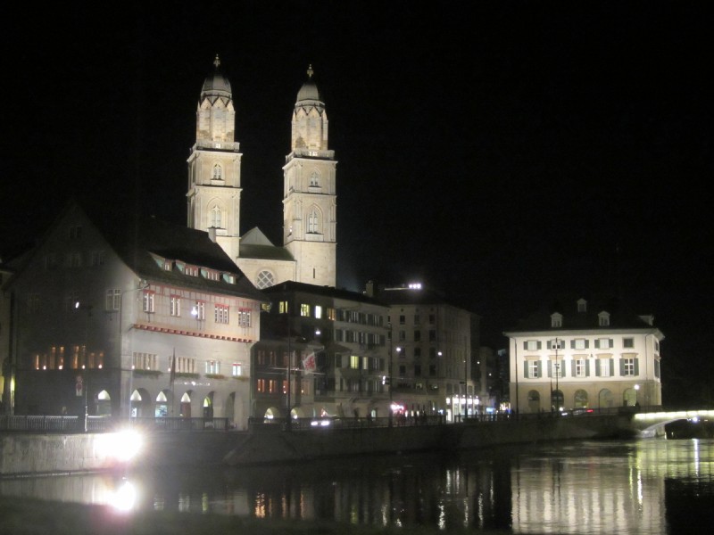 20:43:13 Dinner at Hiltl - the vegetarian version of steak tartare. | 20:57:51 The Züri Geschnetzeltes at Hiltl. | 21:24:45 Some night time views of Zurich. That's the Grossmünster. | 21:25:06 |