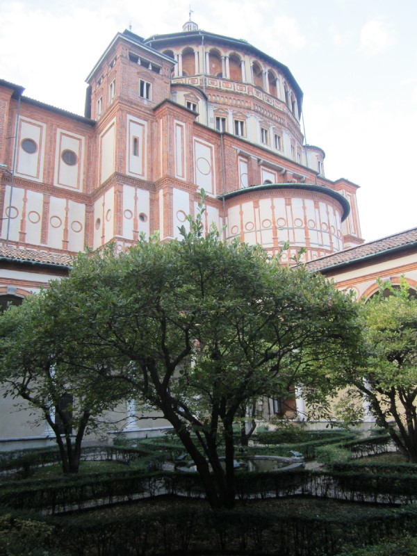 08:39:03 The view from our hotel room. | 08:58:06 Milan Centrale station, again, it's rather grand isn't it? | 08:59:40 A sort of conveyor belt for luggage by the side of the stairs. This seemed like a good idea, and probably cheaper than installing escalators. | 09:20:12 Santa Maria delle Grazie, the church (priory?) where the Last Supper is housed. |