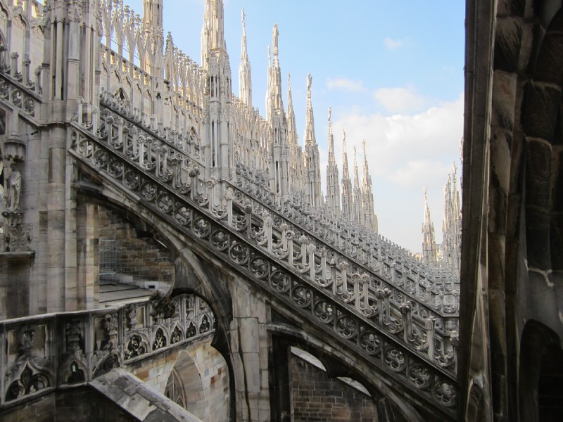 11:06:23 The entrance to the very grand Galleria Vittorio Emanuele II - Milan's very upmarket shopping arcade, just off the Piazza del Duomo. | 11:07:28 Some of the masonry on the Duomo. | 11:10:31 Inside the Duomo. | 11:16:04 |