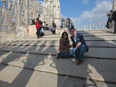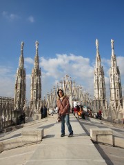 11:33:13 Up on the top bit of the roof now. Unfortunately some construction work was taking place, but it was still impressive nonetheless. | 11:34:00 Chie takes in the view. | 11:34:44 Self timer shot on the roof of the Duomo. | 11:35:44 Taken for us by a passer by. Almost wish he hadn't offered. |