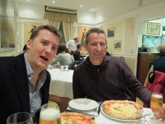 21:18:35 Inside, with Lorenzo's friend Federico, and our bruschetta. | 21:47:33 Lorenzo and Chie with their pizzas. | 21:47:52 Me and Federico with our pizzas. | 21:48:28 My pizza. |