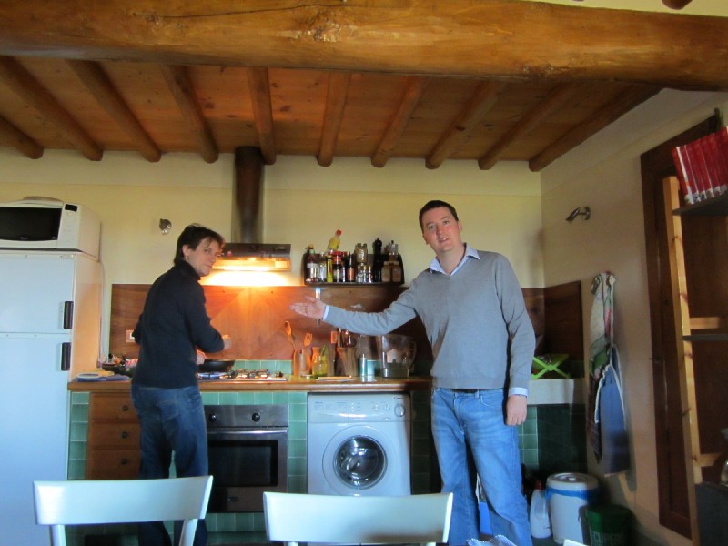 13:56:56 The local cat. | 13:57:03 | 13:59:05 Me amidst the Tuscan landscape. The tweed cap seemed fitting as we were out in the countryside. | 13:59:36 Me and Lorenzo posing for the camera. |