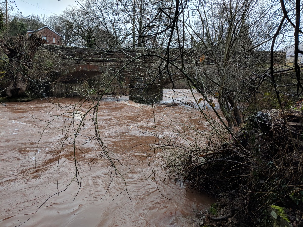 08:20:05 | 08:20:09 The corner of the Cornewall Arms. | 08:20:57 Looked like ice on this branch. | 08:21:22 The cottage and the very full river. |