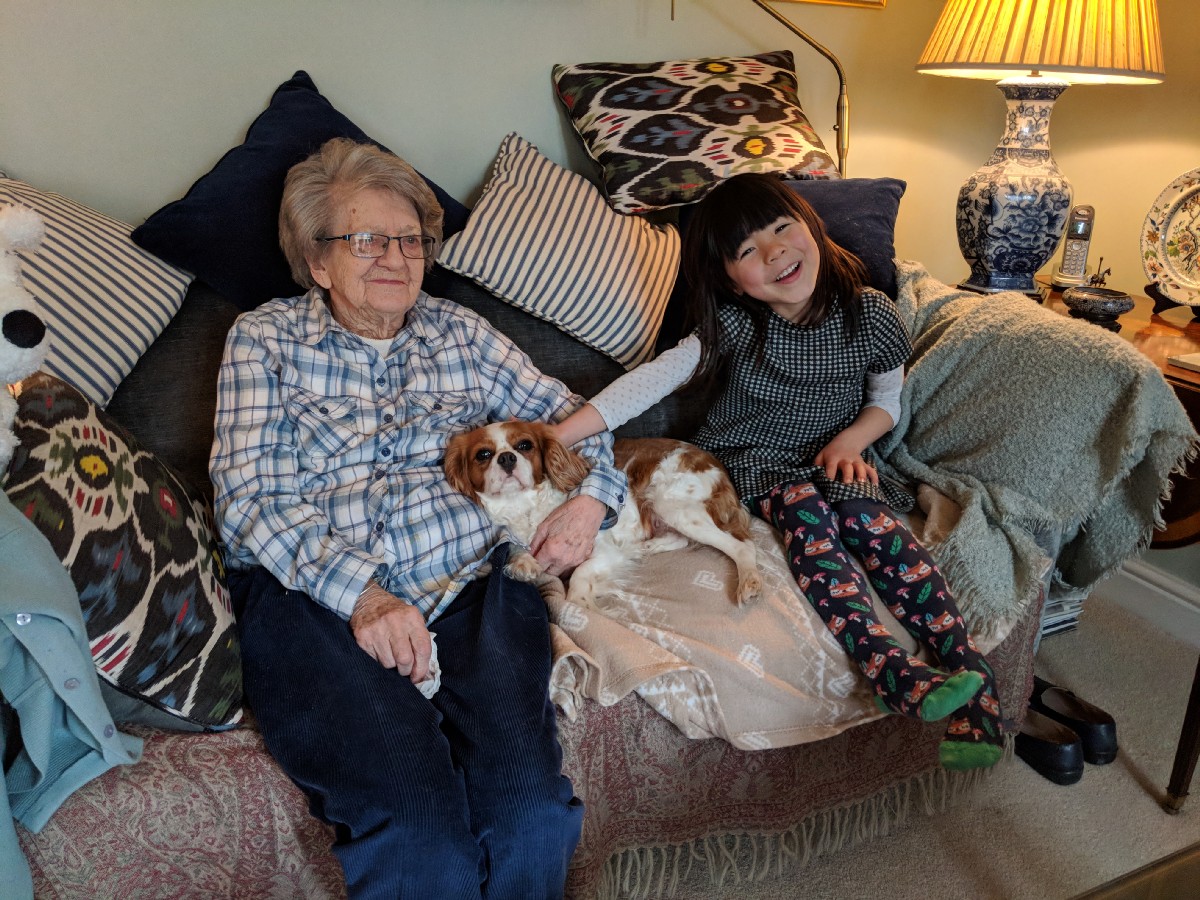 13:43:04 Vera, Lily and Erika, who as you can see was very excited to meet Lily. | 14:15:41 Vera trying on Erika's Easter (as yet undecorated) Easter hat. | 15:13:04 I thought this cottage looked rather nice. | 15:46:01 Vera and Lily having a nap. |