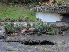 08:51:16 Over the back of the cottage's garden is the pub's garden. | 08:51:38 You can see the pub from the cottage's bedroom. | 08:51:50 A lamp in the corner of the second bedroom. | 09:00:28 Something or other growing out of the roof tiles. |