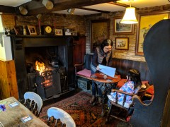 11:44:25 The river again. | 12:10:39 The fire at the Carpenters Arms, where we went for lunch. | 12:10:46 Chie and Erika in the very nice snug of the Carpenters Arms. | 12:19:08 |
