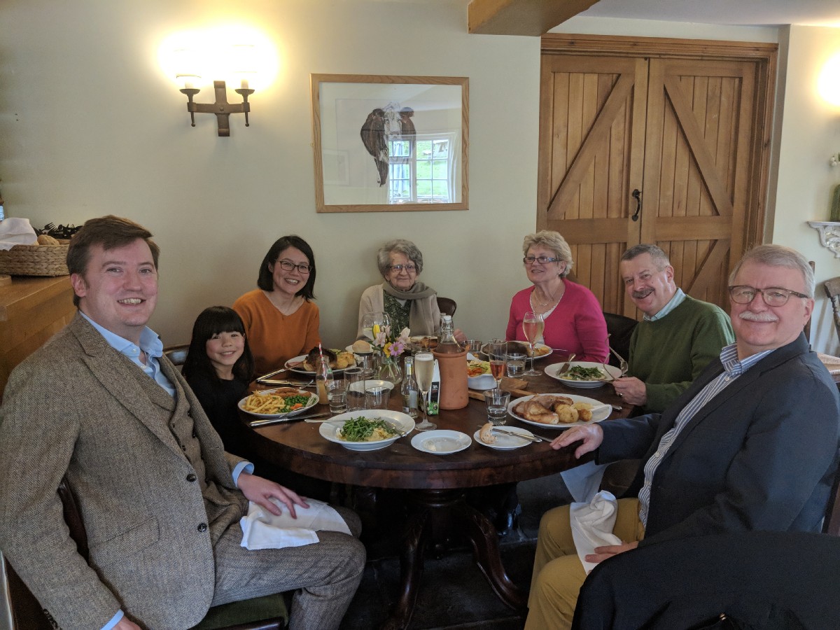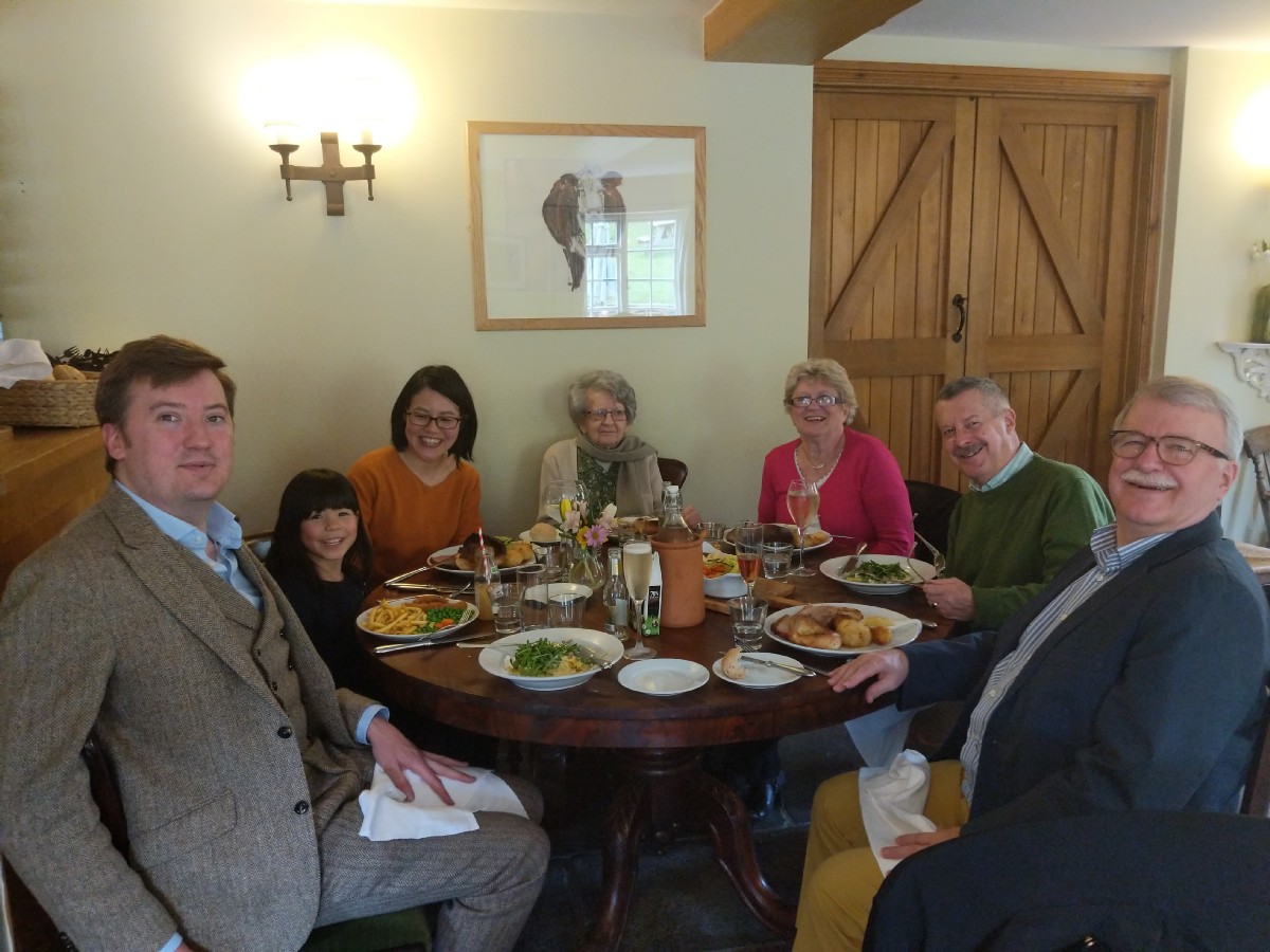 12:04:35 Back down to the little bridge over the Monnow by the cottage. | 13:13:44 First page of the menu at the Bell at Skenfrith. | 14:06:21 Our table at the Bell. | 14:06:22 |