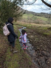 11:02:34 | 11:02:40 Hard to tell whether this was a path or a stream! | 11:03:34 The view back down to Clodock. | 11:04:58 Chie and Erika enjoying the path/stream. |