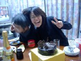 Sunday 21:15 Chie, Yuka and Dad, plus the cake. |