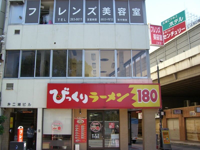 This shop here is called "Bikkuri Ramen" which translates as "Surprise Noodles". I think the suprise is the price - 180 Yen, less than a pound.