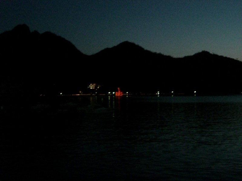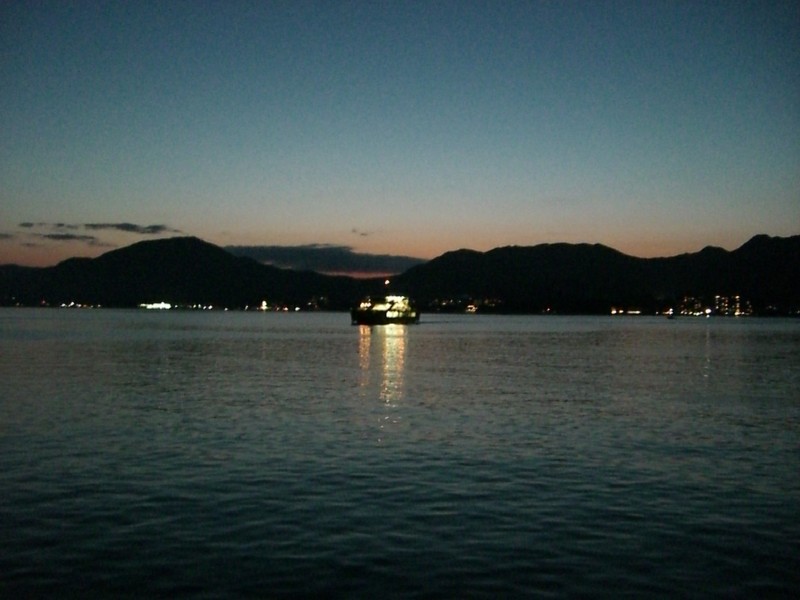 One of the ferries there lighting up part of the sea.