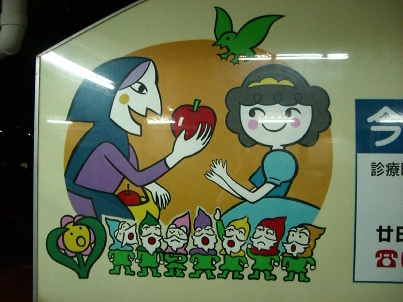 I rather like this depiction of Snow White and the Seven Dwarves - the witch here is saying "get this down you, pasty face".