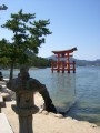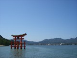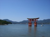 Here we are now on the way to Miyajima, and thus we have the usual picture taken from the ferry, in which you can just about see the famous sea gate.