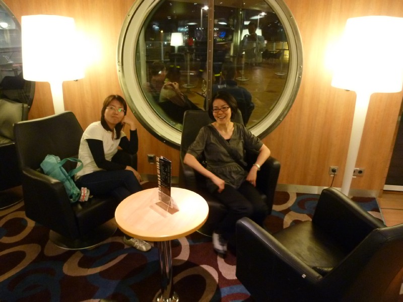 | 22:10:38 Chie and Yuka in the ferry terminal in Harwich, about to get on the boat. | 22:16:02 Our "captain's cabin" on the new Stena Hollandica. | 22:18:02 Hmmm not sure why I took almost exactly the same picture two minutes later... |