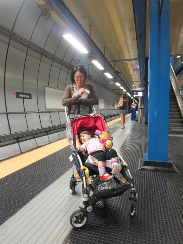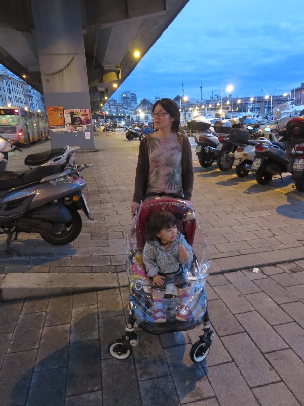 16:12:41 Waiting at the ticket office for the rain to stop. The lady on the till kindly gave Erika her seat to sit on. | 16:58:47 Back at the hotel. | 16:59:03 | 17:57:03 We thought we'd try out Genoa's Metro system. It wasn't really worth it, as it seemed like we spent longer waiting for a train than it would have taken to walk. |