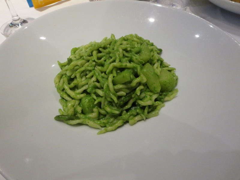 20:09:09 | 20:23:46 Stuffed vegetables, thr stuffing turned out to include bacon, so I didn't actually eat any in the end. | 20:38:11 First of many pesto pasta dishes - served in the traditional Genoese style, with green beans and potatoes. | 21:04:24 Outside I Tre Merli, this area is called the Porta Antica (old harbour) but actually looks very modern now. |