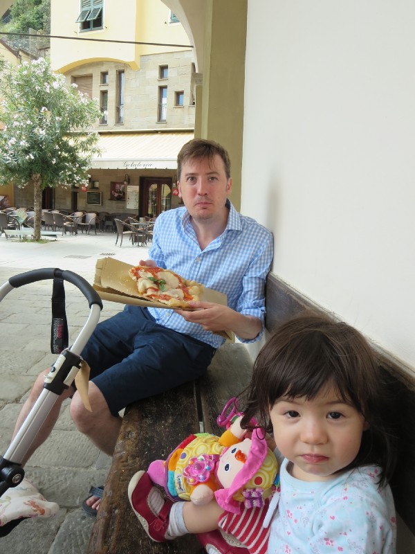 13:08:06 | 13:34:21 The little street which led to our hotel. | 13:34:51 Our local church. | 13:54:46 We got lunch from "La Cantina" - the Ligurian equivalent of a fish and chip shop. |