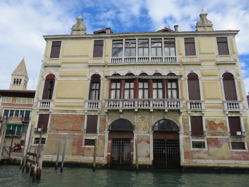 13:37:37 Didn't take a picture of my main course (orecchiette in an olive and sun dried tomato sauce) but that was good too. | 14:35:49 Back at my hotel, took another picture of the sitting area for some reason. | 15:02:43 Got the vaporetto along the Grand Canal from the Rialto Bridge to head back to see more of the Biennale - this time I wanted to see the Giardini part. En route I snapped some of the palazzo I particularly liked the look of. | 15:04:35 |