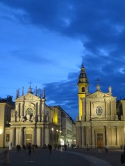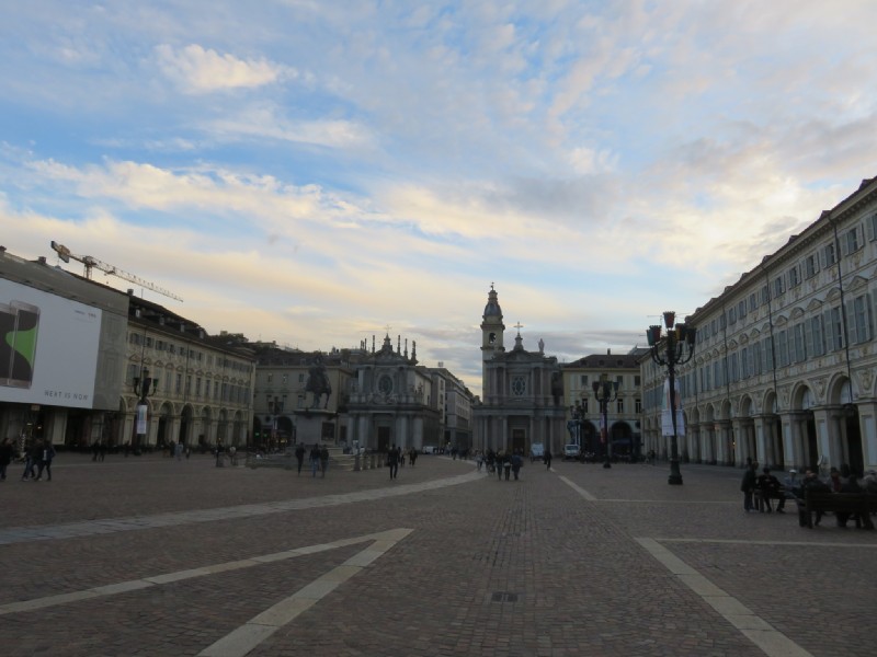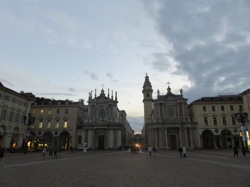 18:23:42 Back to the Piazza San Carlo. | 18:28:24 Inside Caffe San Carlo. | 18:37:27 The "aperitivo della casa" at Caffe San Carlo. | 18:50:19 The two churches of the Piazza San Carlo. |