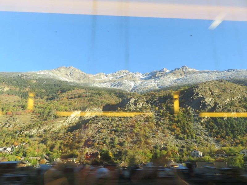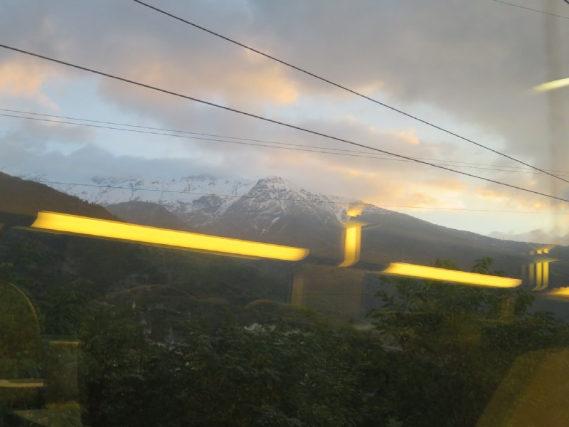 07:44:24 My seat on the TGV from Turin to Paris. Seat 61! | 07:44:31 My seat with my shopping from Eataly. | 08:06:16 Nice views of the Alps but hard to get a good picture with the reflection of the lights in the windows. | 09:05:30 Slightly more successful here. |