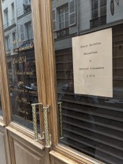 11:45:53 Out first disappointment in Paris - the place I had chosen for lunch was closed for refurbishment. | 12:11:47 It was actually quite cold and Erika was hungry so we just went to a cafe round the corner instead. It was OK I guess. | 13:18:34 After lunch we had our second and biggest disappointment of the day - the boat I wanted to get on to go for a cruise along the Seine wouldn't let us on because we had luggage. So to try and cheer us up I thought we could go to a famous ice cream place nearby - and guess what? Disappointment number three - it was closed for refurbishment. | 13:28:18 We instead went to a different ice cream place which Erika said she really liked. |