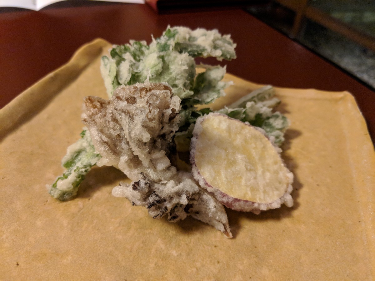 20:24:49 The vegetarian menu at Ukai. | 20:34:04 Yuba sashimi. | 20:49:26 Baked yam with gingko nuts. | 21:12:25 Vegetable tempura. |