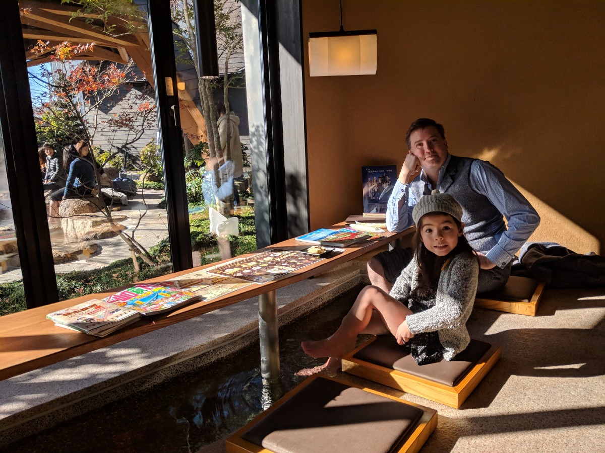 10:14:11 Milling around in the hotel foyer after checking out. | 10:14:16 | 10:44:19 Erika dabbling her feet in the very nice footspa cafe near the hotel. | 10:44:28 |