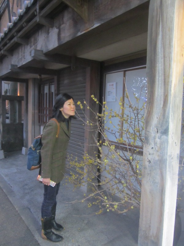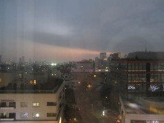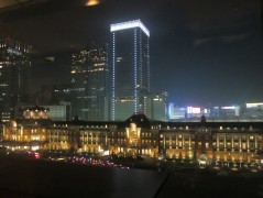 17:19:24 Chie enjoying the scent of this tree. | 17:32:27 Sort of a sunset from our hotel room. | 17:32:44 | 19:26:58 Rather impressive view of the nice side of Tokyo station, from the restaurant where we had dinner. |