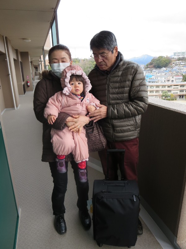 08:30:24 Chie eating an Amaou strawberry. | 08:30:28 | 10:05:23 Erika saying goodbye to Jiji and Baba (Grandma and Grandad). | 11:35:35 Getting on the shinkansen at Hiroshima. |