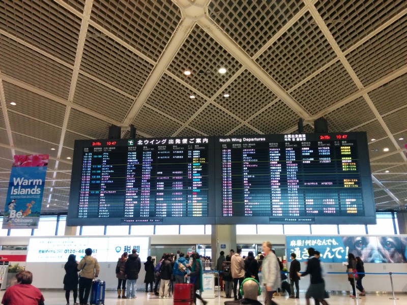 10:47:56 At Narita airport just after checking in. Having spent the last three hours fretting we were going to miss our flight, I was breathing a very big sigh of relief at this point. | 11:36:42 Erika just as we were getting on board the plane. She didn't seem particularly flustered by the challenging time we'd had this morning. |