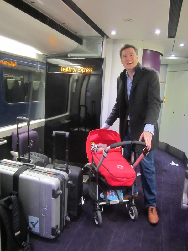 09:42:38 Me, Erika and our ridiculous amount of luggage on the Heathrow Express. | 13:10:18 Chie and Erika on the plane, just after take off. | 13:11:17 Erika leafing through the Financial Times. | 13:12:18 Me and Erika on the plane. |