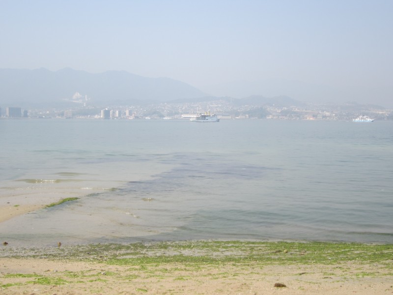 12:56:08 From the beach on Miyajima we could see Ginga, the ship we had our wedding reception on. | 12:56:17 Close up on Ginga. | 13:00:12 Recreating one of our wedding photos, plus Erika. | 13:00:18 |