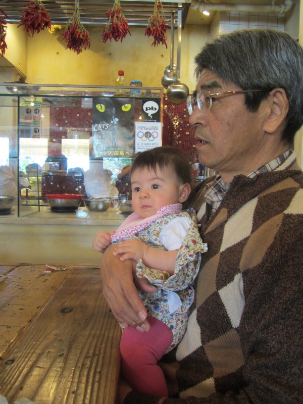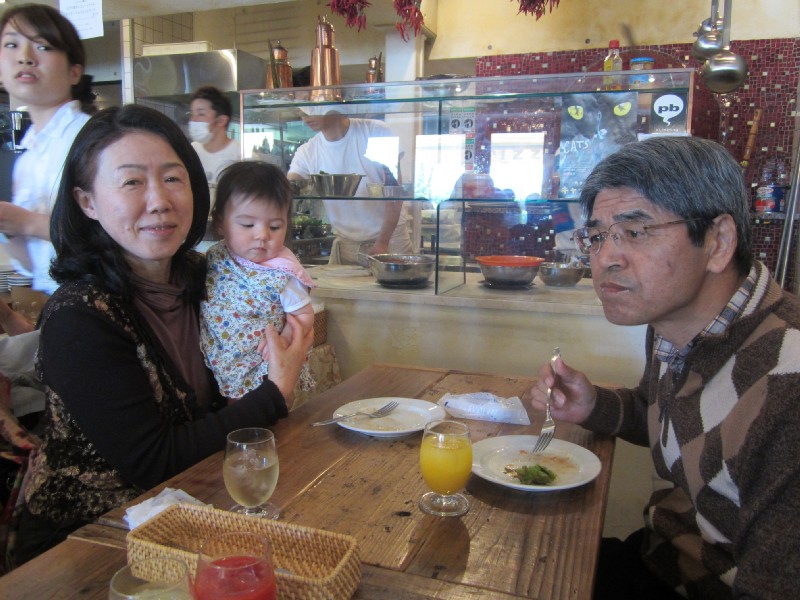 12:21:20 Chie and Erika in Pizzariva - not Erika is wearing her Liberty print dress as its a special occasion! | 12:23:38 Me and Erika. | 12:32:53 Erika and her Grandparents, with the pizzas being made in the background. | 12:34:50 The pizza oven. |