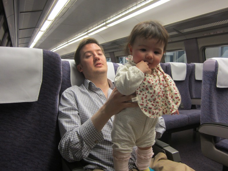 18:37:03 | 19:22:41 Two Mums and their babies - this is Kanako-san, Testsu-san's wife. | 19:23:35 | 20:19:21 At Okayama station again, waiting for the shinkansen back to Hiroshima. |