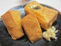 13:15:56 Some raw tofu... | 13:20:05 ...and some deep fried tofu. | 13:36:21 Outside Okabe. | 13:48:01 This is momotaro, a character from a Japanese story based in Okayama. |