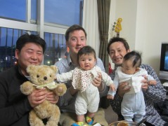 18:35:37 Three Dads and their babies (in Hiroshi-san's case his kids were at home, so he's holding this teddy bear instead). | 18:35:44 | 18:36:31 | 18:36:38 |