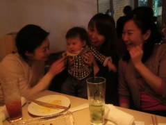08:36:13 Me feeding Erika some banana before going off to work. | 20:26:11 Erika with some of Chie's friends in the evening - Yuki-san, Yumi-san, and Asakusa-san. | 20:26:21 | 21:20:23 The little street of cherry blossom trees next to my hotel. |