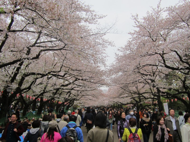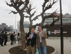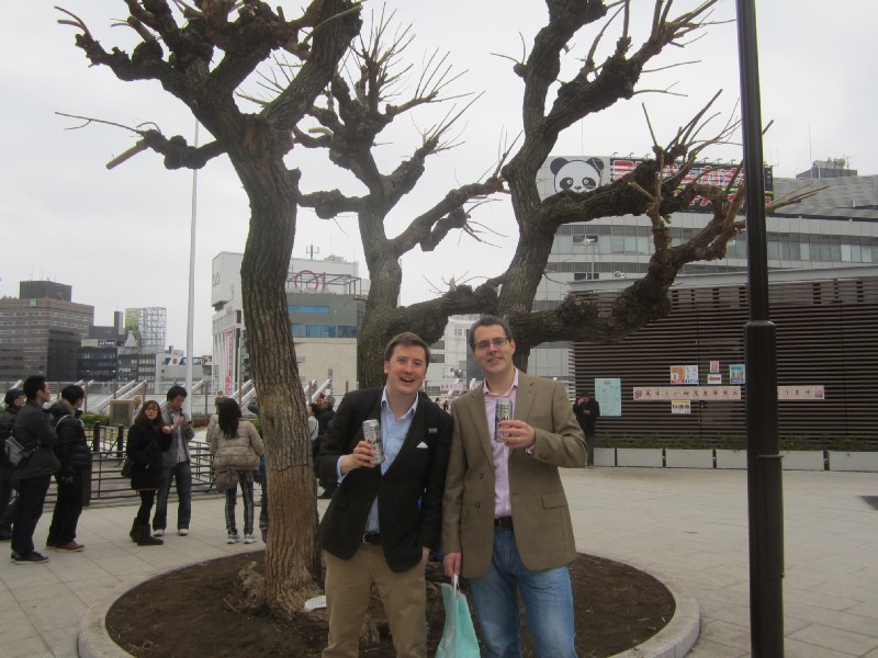 13:58:05 Me, Chie, Erika and the cherry blossoms. | 14:17:52 In Ueno station, with some fake cherry blossom and fake panda. | 14:54:38 Having a spot of afternoon tea/coffee in a Doutor in Ueno station with Andy. | 16:00:16 A very quick hanami in the park with Andy before we went off to get the train. Note the complete lack of blossom on the tree we chose to stand under. |