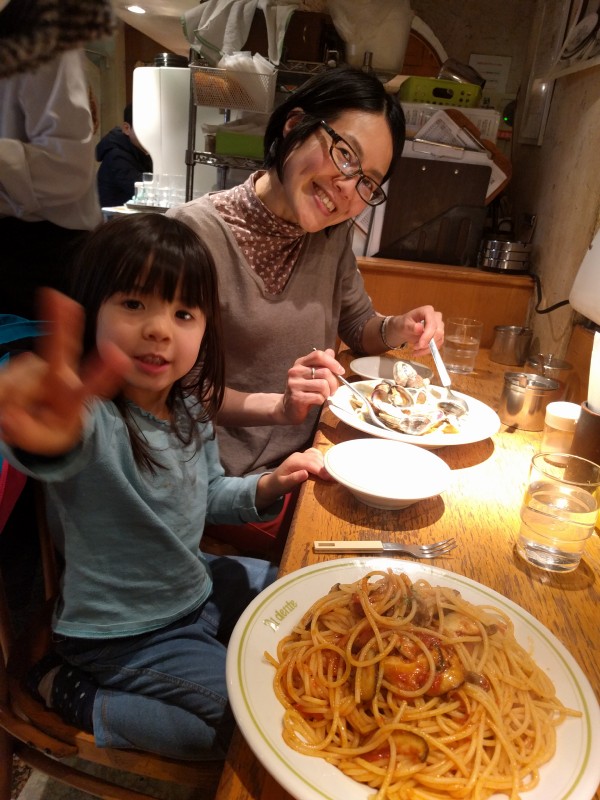 12:31:37 Erika and Chie outside Al Dente. | 12:49:04 We've been seated now - here's Erika, Chie and two of the chefs. | 12:58:52 ....and our food has arrived, every bit as delicious as it used to be! | 12:59:05 ...and delighted to see Erika enjoyed it too. |