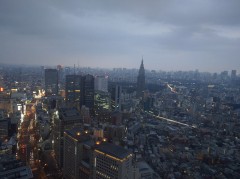 11:31:25 Picture slightly reminiscent of Lost in Translation. Also I wanted to include my ridiculous orange suitcase, which I'd been forced to bring on this trip as my standard bag had gone mouldy. | 11:35:36 There was a nespresso machine in the room. | 11:36:07 Espresso and the view. | 12:29:34 In the queue for lunch at Al Dente in Shinjuku, an old favourite of ours which happens to be fairly close to the Park Hyatt. |