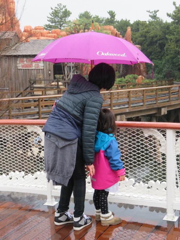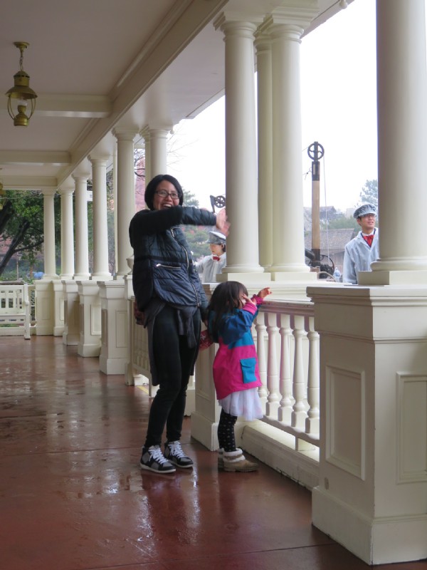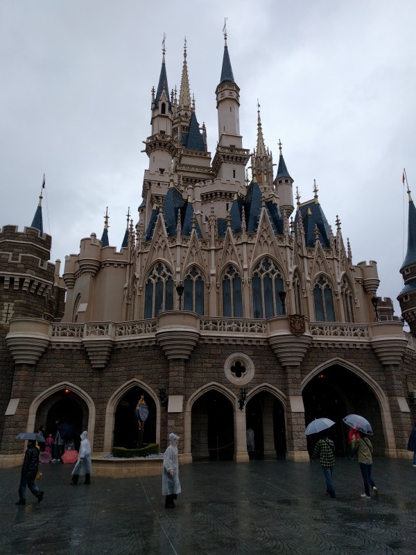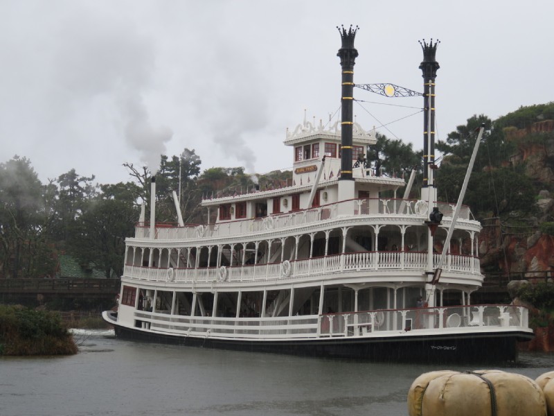 11:00:55 | 11:01:38 | 11:22:43 The Disney castle again. | 11:32:25 Here we are in the wild west themed bit of Disneyland, waiting to get on the paddle steamer. Amazingly there were still people doing kayaking despite the weather. Rather them than me. |